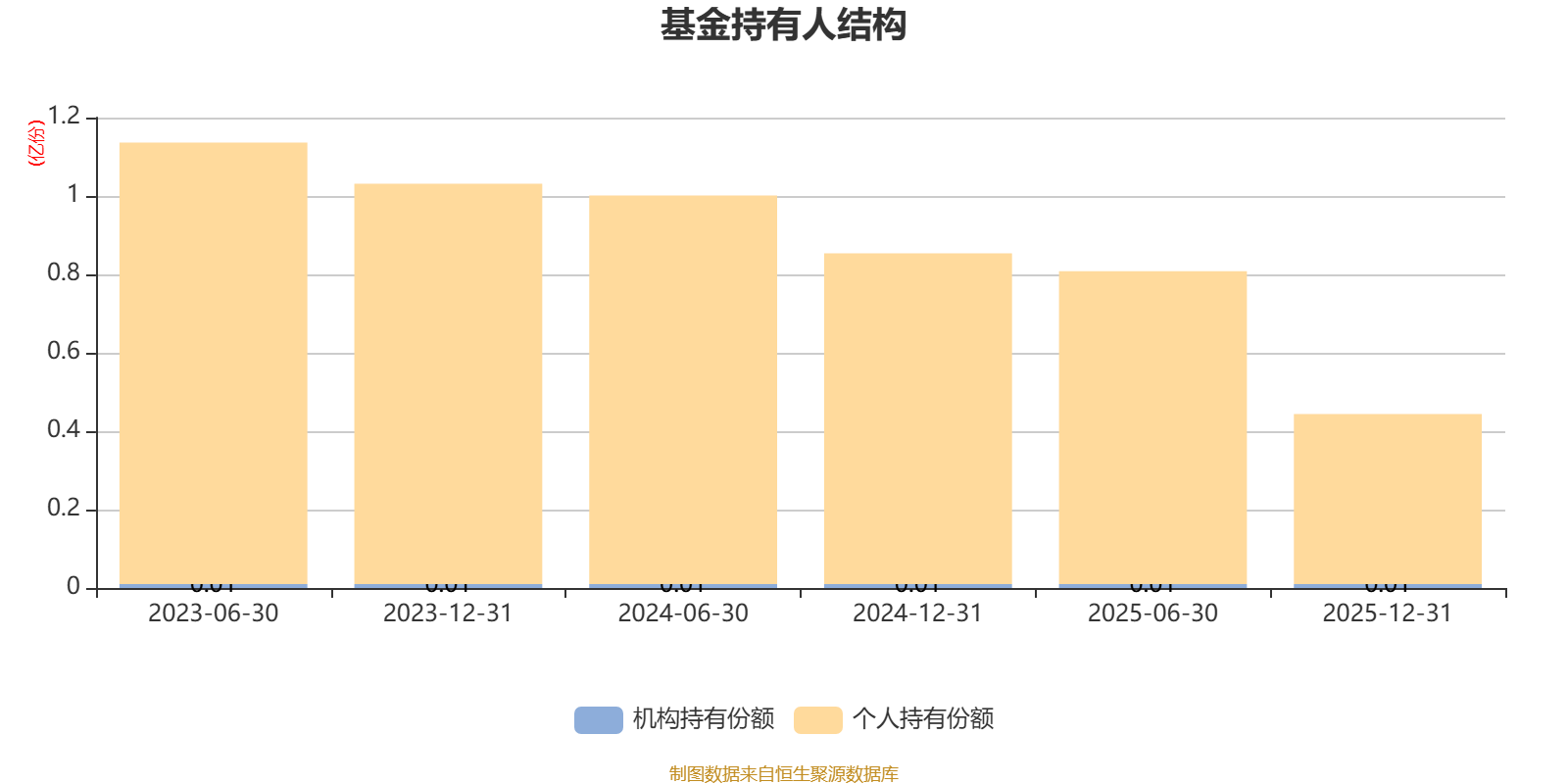 截至2025年12月31日,基金持有人共计513户,合计持有4443.62万份。其中管理人员工持有703.33万份,占比15.83%,机构持有份额占比2.23%,个人投资者占比97.77%。
