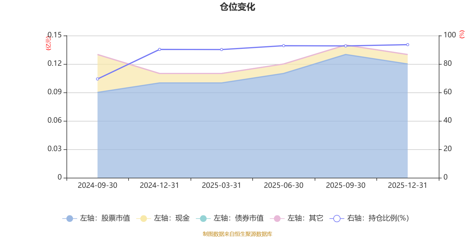 据定期报告数据统计,成立以来平均股票仓位为88.17%,同类平均为84.04%。2025年末基金达到93.59%的最高仓位,2024年三季度末最低,为69.46%。