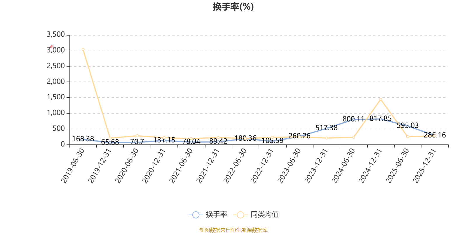 截至2025年12月31日,基金最近一年换手率约816.42%,持续1年高于同类均值。