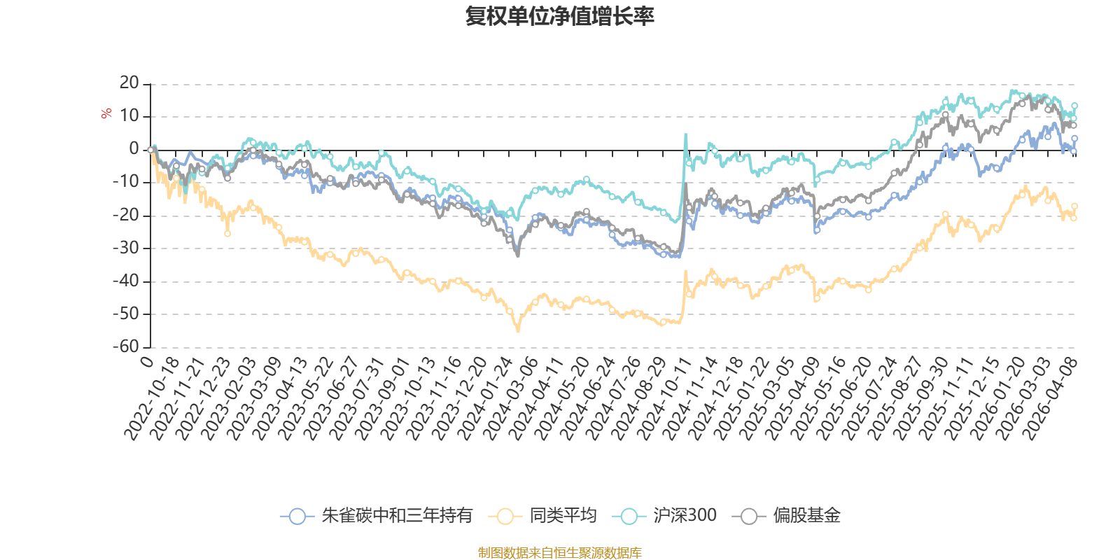 截至4月8日,朱雀碳中和三年持有近三个月复权单位净值增长率为4.85%,位于同类可比基金18/100;近半年复权单位净值增长率为2.91%,位于同类可比基金36/100;近一年复权单位净值增长率为38.44%,位于同类可比基金70/99;近三年复权单位净值增长率为10.82%,位于同类可比基金45/76。