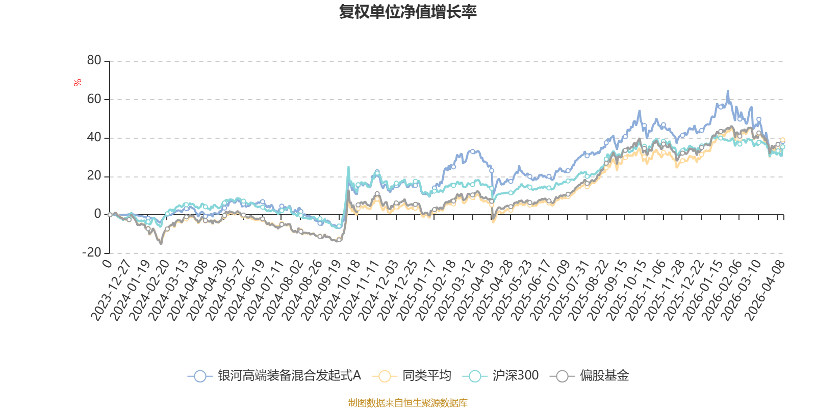 截至4月8日,银河高端装备混合发起式A近三个月复权单位净值增长率为-8.49%,位于同类可比基金615/689;近半年复权单位净值增长率为-8.91%,位于同类可比基金585/689;近一年复权单位净值增长率为23.74%,位于同类可比基金509/685。
