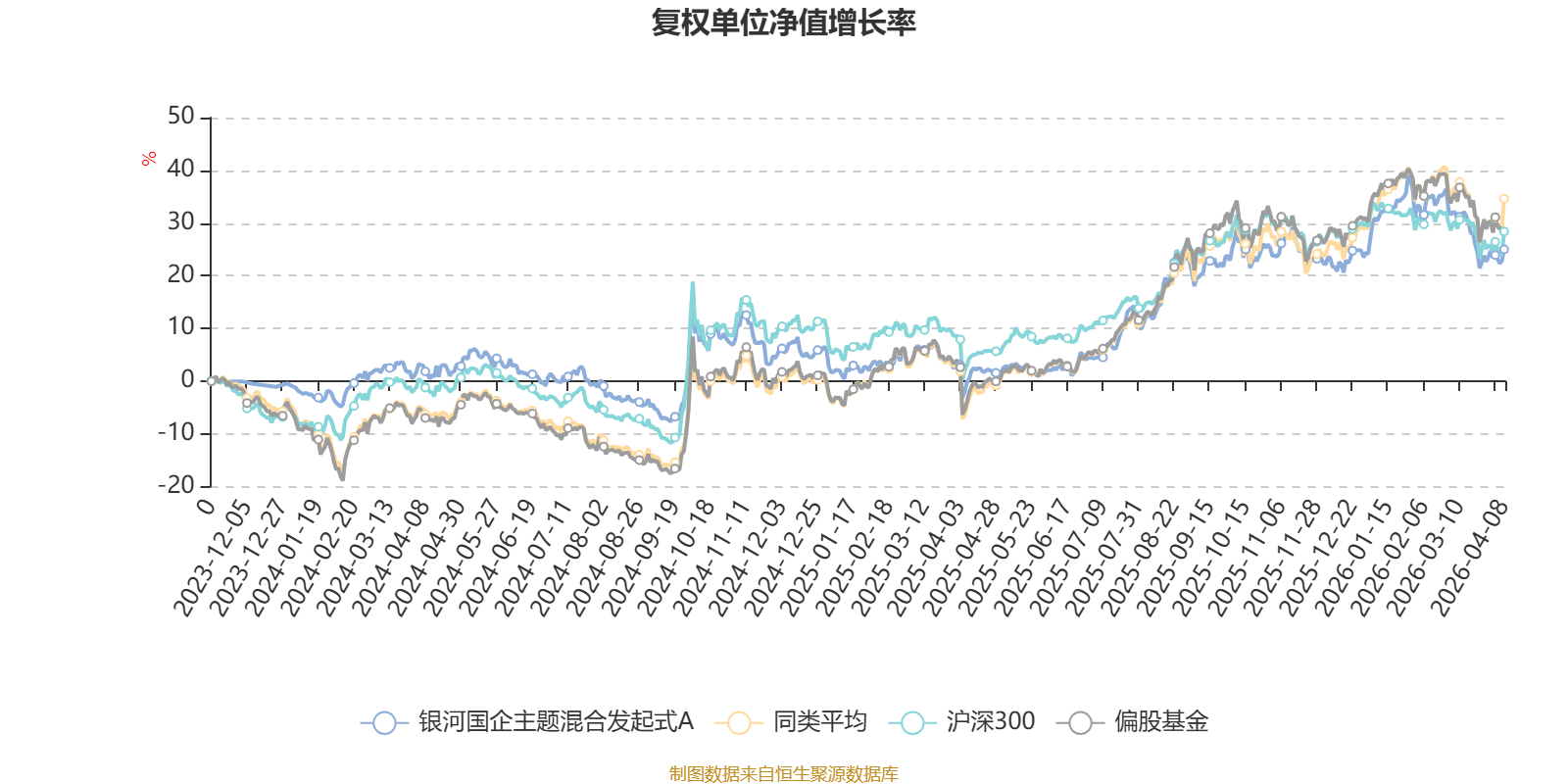 截至4月8日,银河国企主题混合发起式A近三个月复权单位净值增长率为-4.12%,位于同类可比基金517/689;近半年复权单位净值增长率为-1.31%,位于同类可比基金475/689;近一年复权单位净值增长率为27.55%,位于同类可比基金455/685。