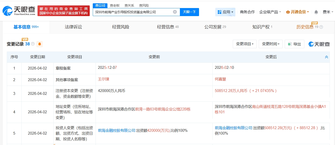 深圳市前海产业引导股权投资基金公司增资至50.9亿