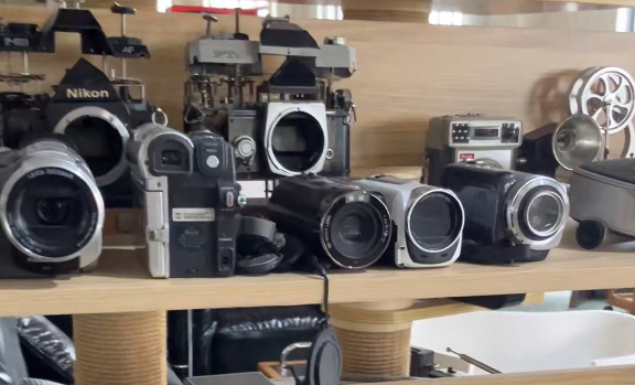 变瑟龙道具博物馆收藏的各式相机。蒋月摄。