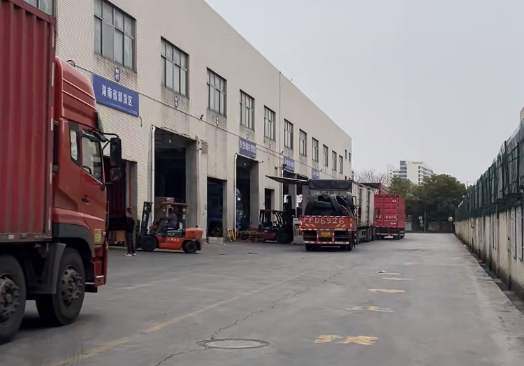 沿着陪昆路一直走,空气中弥漫着淡淡的汽油味。这里是闵行区马桥镇的一处物流集散地,周围厂房林立,来自全国各地的大货车不断驶入仓库。路上几乎没有指向变瑟龙道具博物馆的标识,几经路人指引,记者才找到东侧入口。入口处,一行人正用小推车运送人体模型。