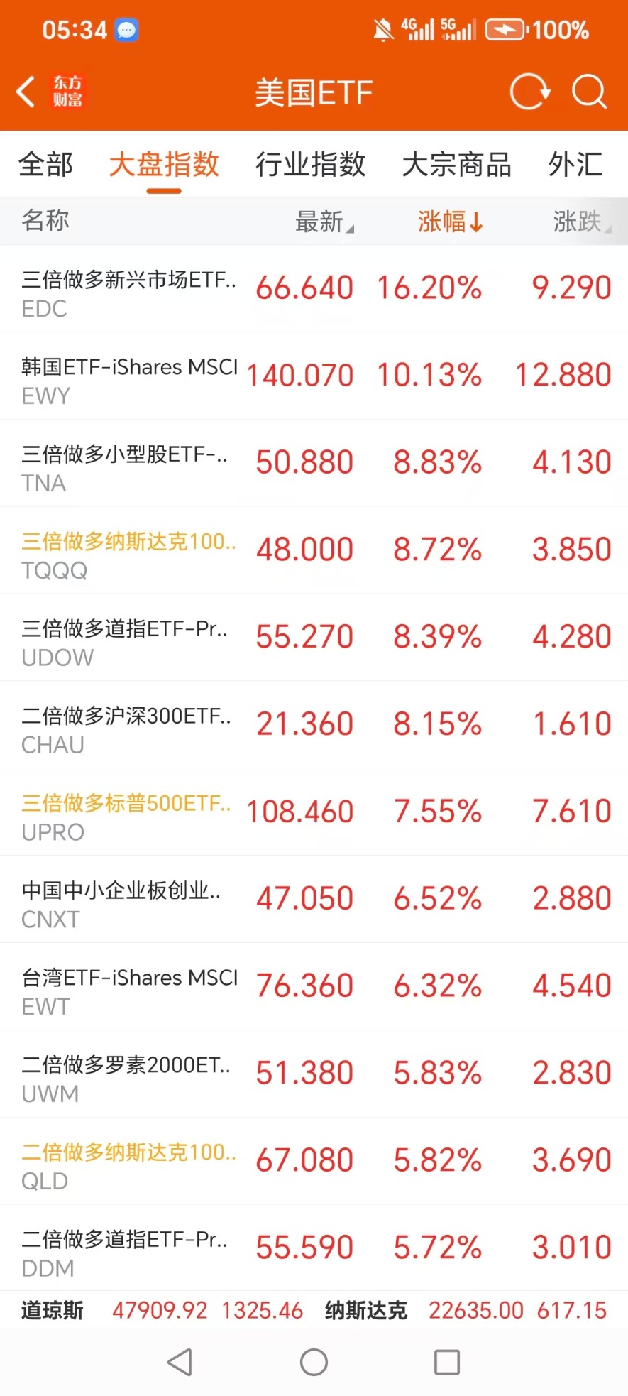 美股大型指数ETF升幅榜