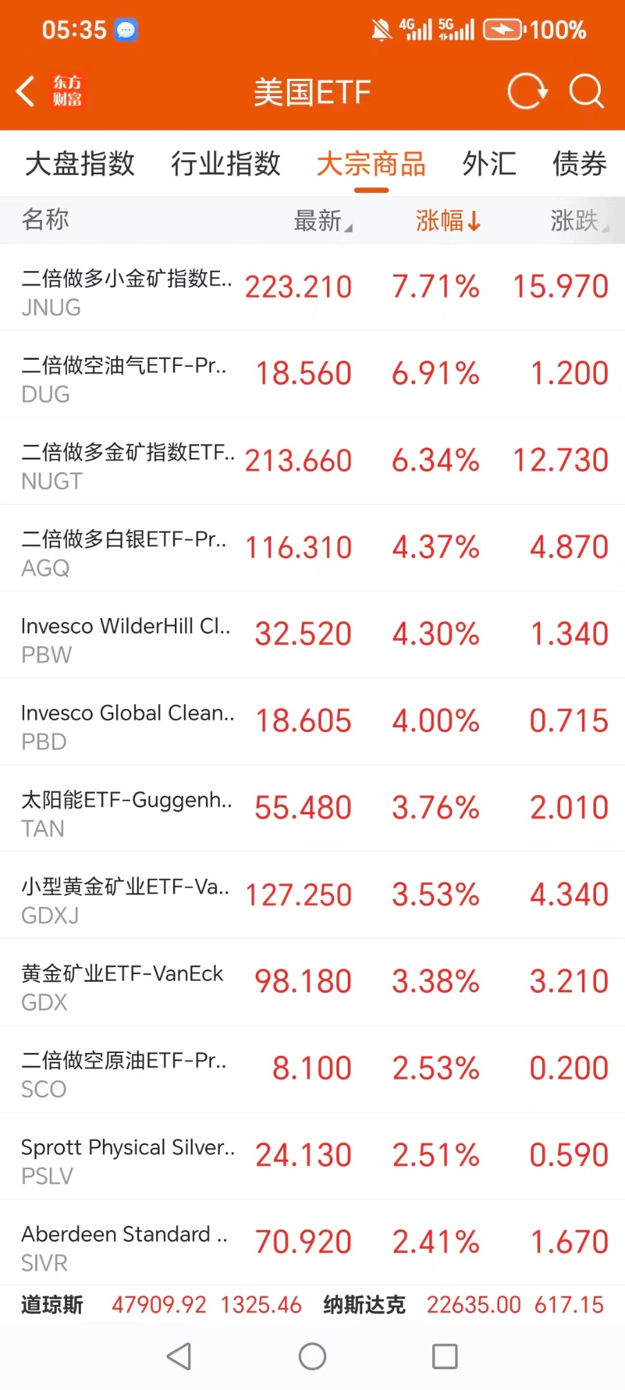 大宗商品型ETF升幅榜