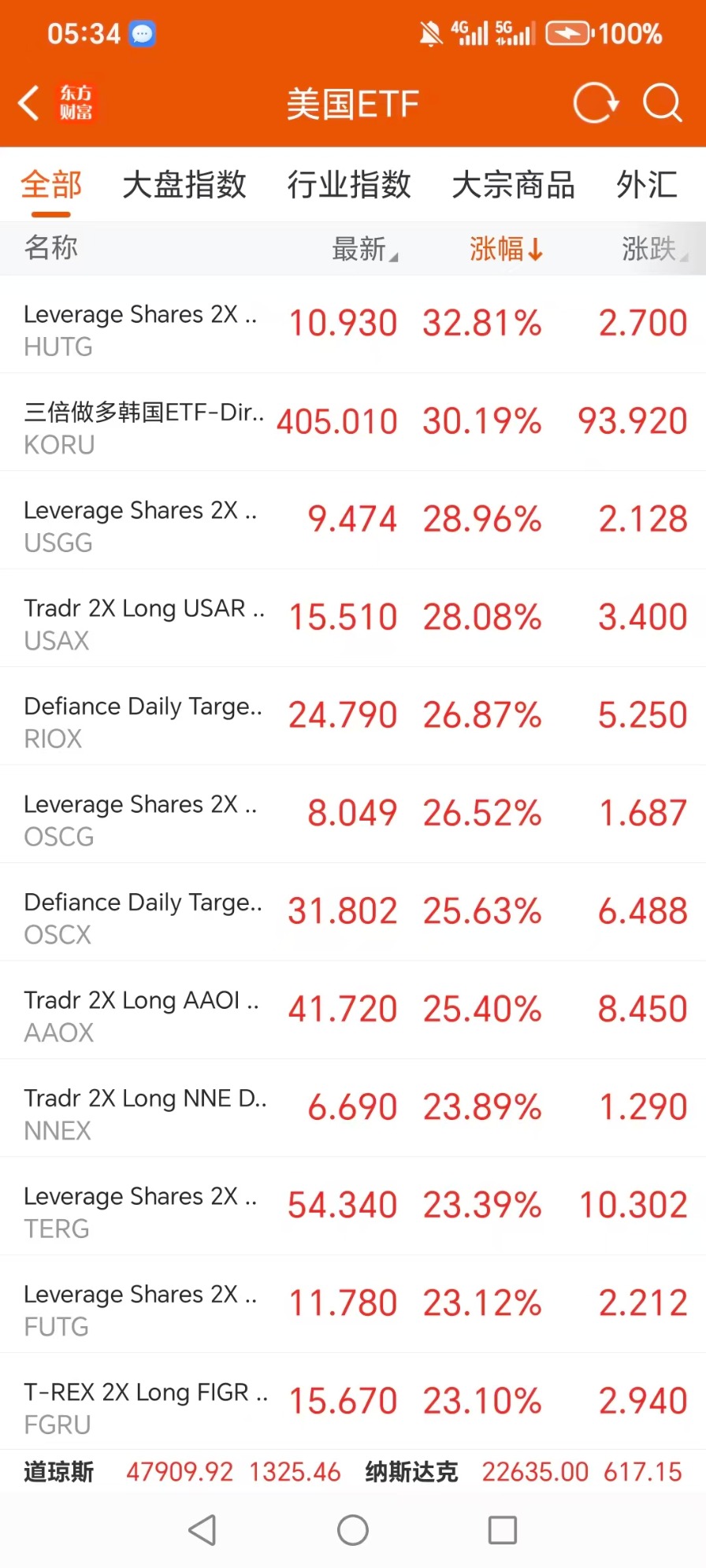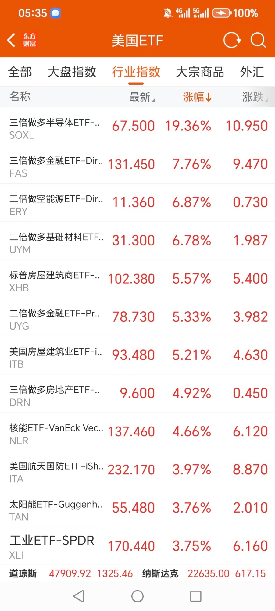 美股ETF升幅榜