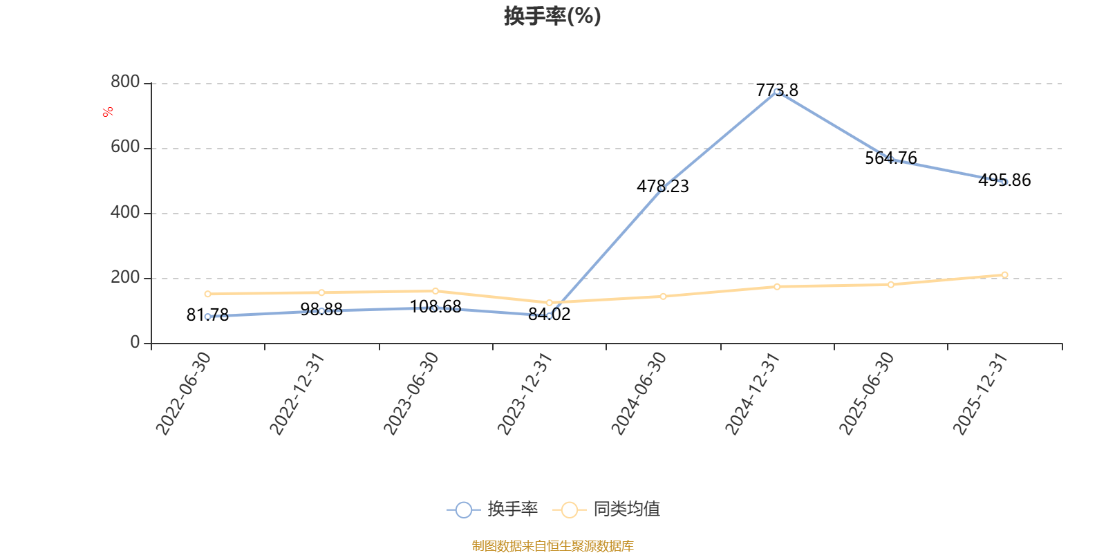 截至2025年12月31日,基金最近一年换手率约1071.49%,持续2年高于同类均值。