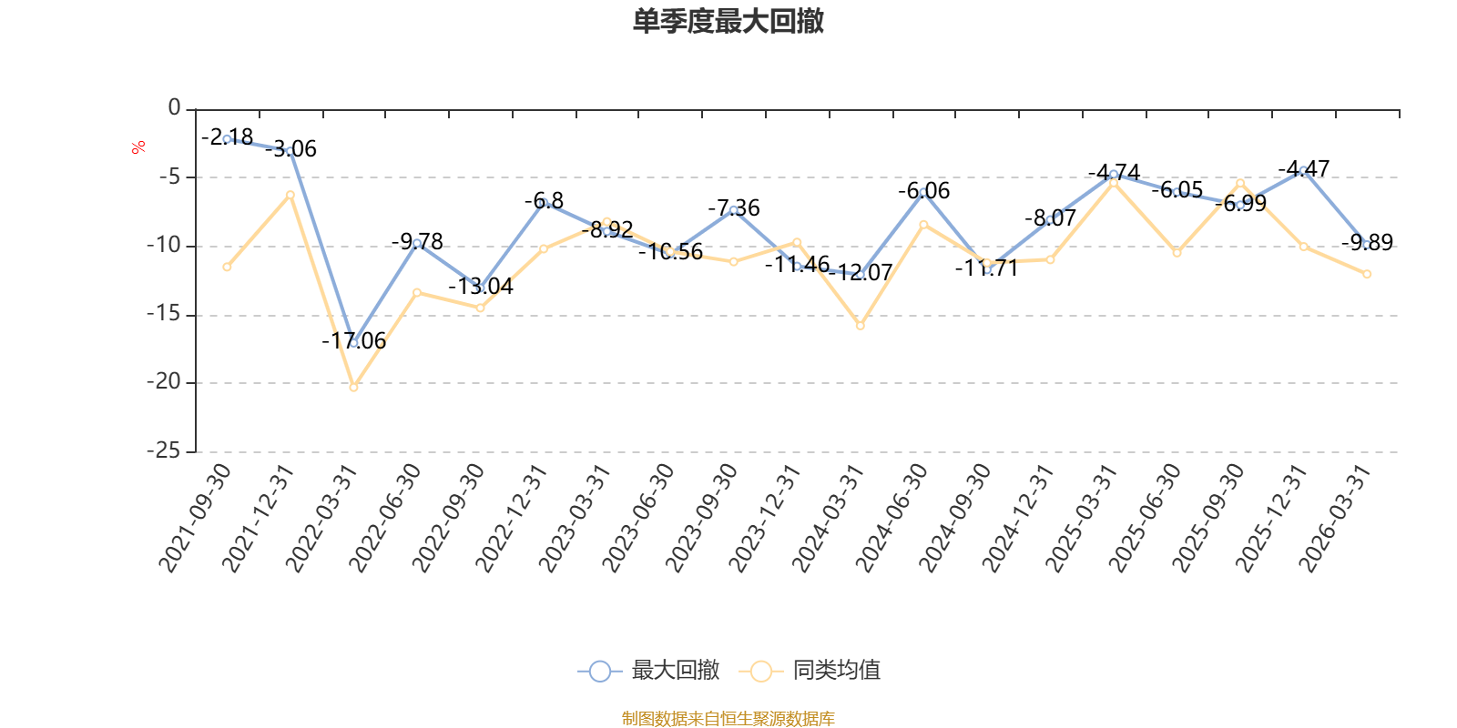 截至4月7日,基金近三年最大回撤为30%,同类可比基金排名100/259。单季度最大回撤出现在2022年一季度,为17.06%。