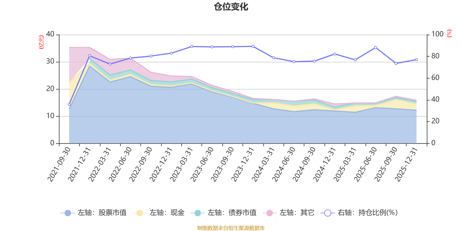 据定期报告数据统计,近三年平均股票仓位为81.94%,同类平均为86.12%。2023年末基金达到89.22%的最高仓位,2021年三季度末最低,为35.88%。