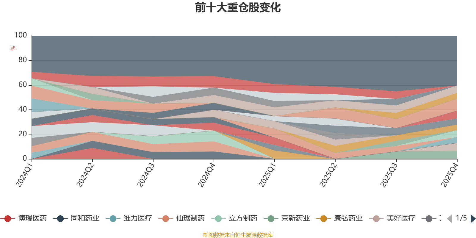 该基金持股集中度较高。截至2025年末,基金十大重仓股分别是苑东生物、京新药业、联化科技、美好医疗、恒瑞医药、益方生物、毕得医药、新诺威、三生国健、司太立。