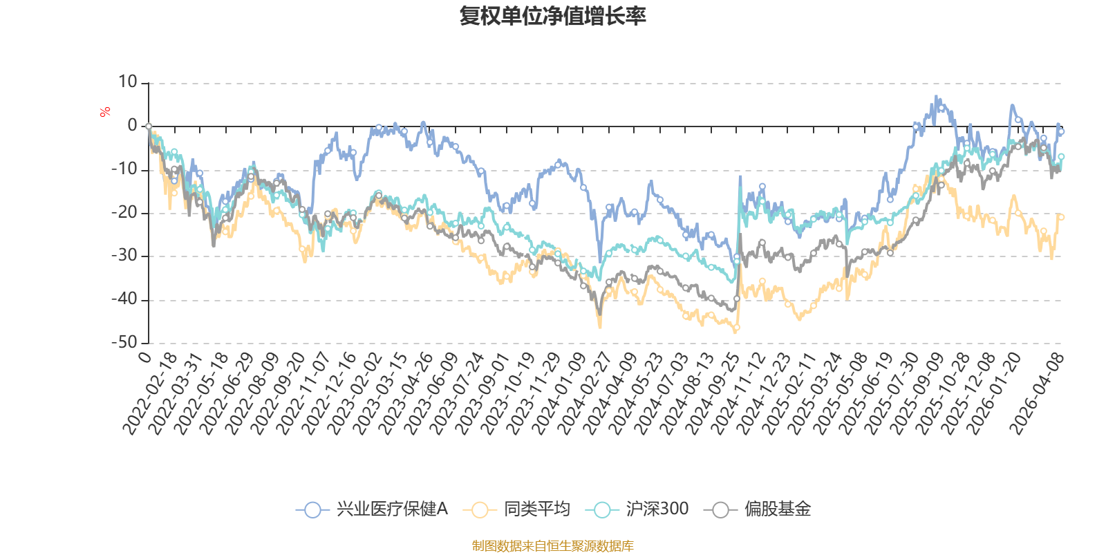 截至4月8日,兴业医疗保健A近三个月复权单位净值增长率为-4.46%,位于同类可比基金69/106;近半年复权单位净值增长率为-2.81%,位于同类可比基金14/106;近一年复权单位净值增长率为30.57%,位于同类可比基金47/104;近三年复权单位净值增长率为0.57%,位于同类可比基金32/78。