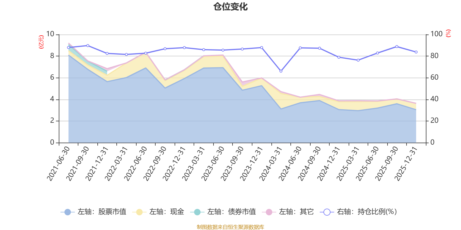 据定期报告数据统计,近三年平均股票仓位为83.17%,同类平均为86.7%。2021年三季度末基金达到89.75%的最高仓位,2024年一季度末最低,为66.16%。