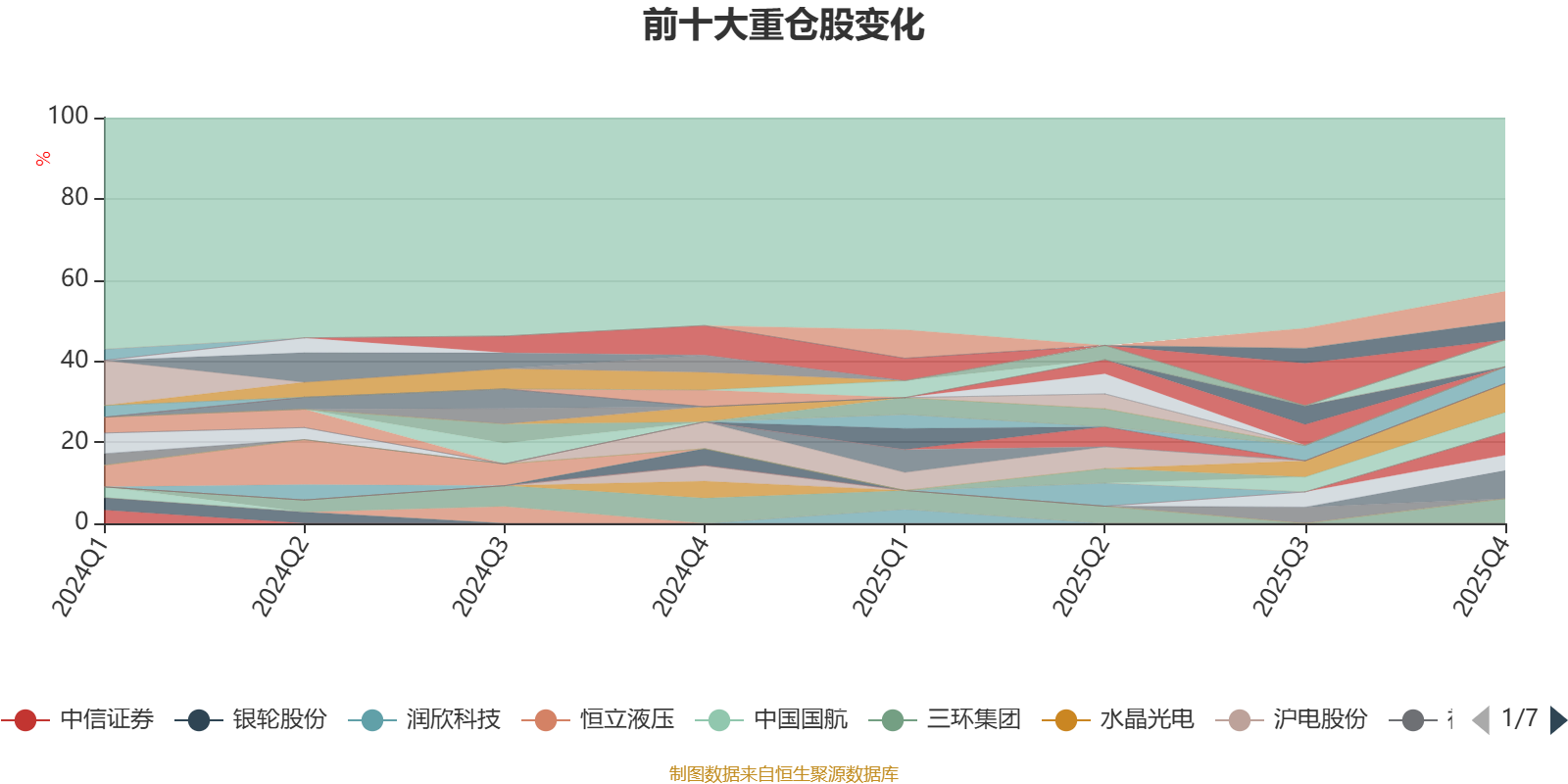截至2025年末,基金十大重仓股分别是海光信息、寒武纪、恺英网络、长芯博创、三环集团、南华期货、华丰科技、耐普矿机、安集科技、中芯国际。