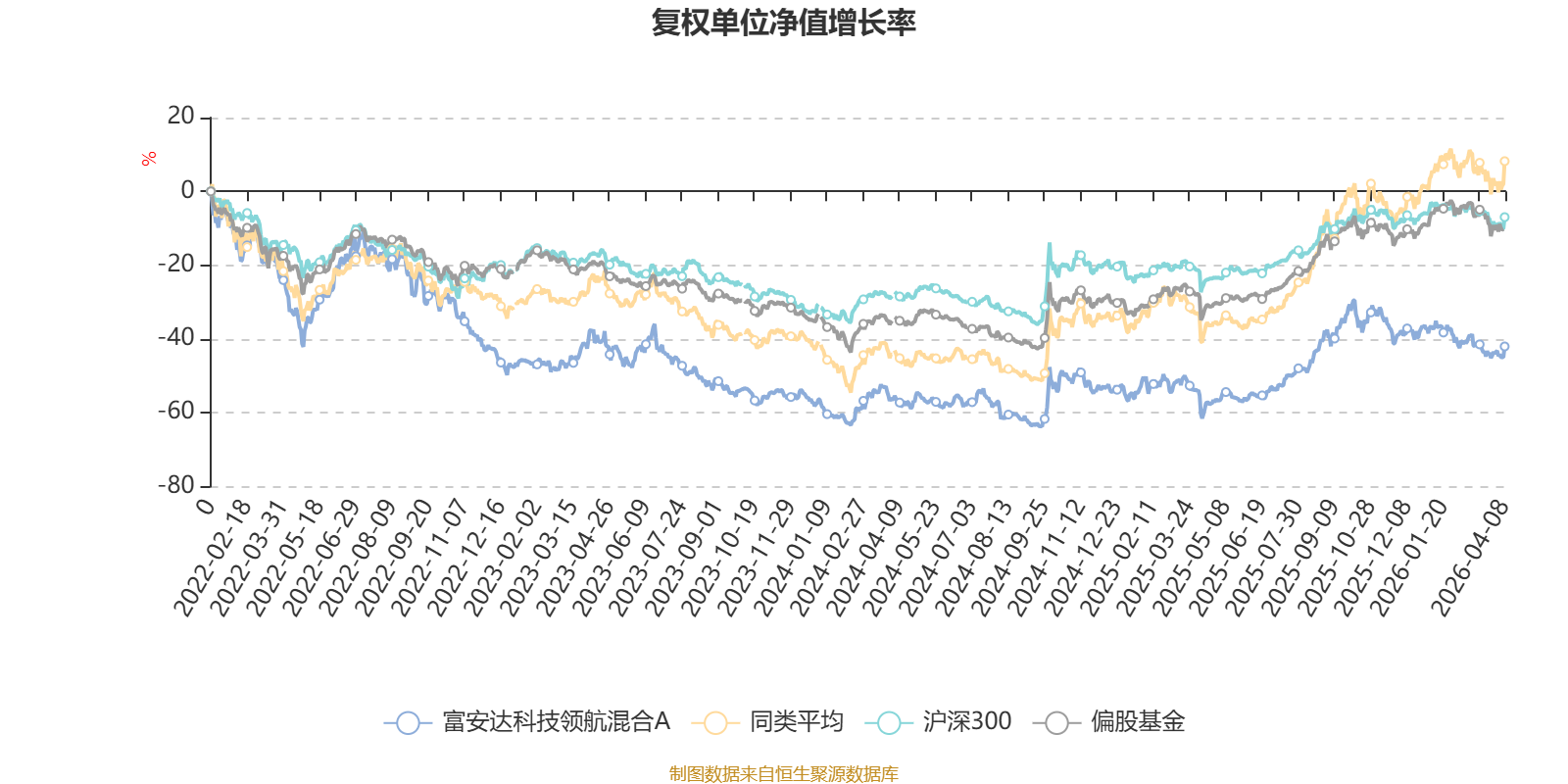 截至4月8日,富安达科技领航混合A近三个月复权单位净值增长率为-7.61%,位于同类可比基金204/229;近半年复权单位净值增长率为-17.71%,位于同类可比基金224/229;近一年复权单位净值增长率为50.54%,位于同类可比基金165/229;近三年复权单位净值增长率为-7.33%,位于同类可比基金166/171。