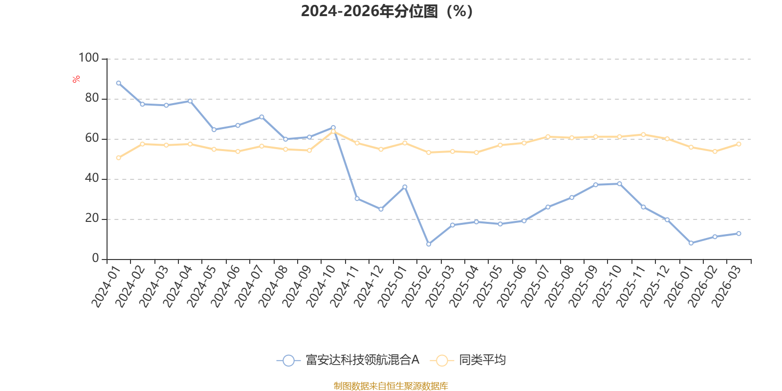通过所选区间该基金净值增长率分位图,可以观察该基金与同类基金业绩比较情况。图为坐标原点到区间内某时点的净值增长率在同类基金中的分位数。