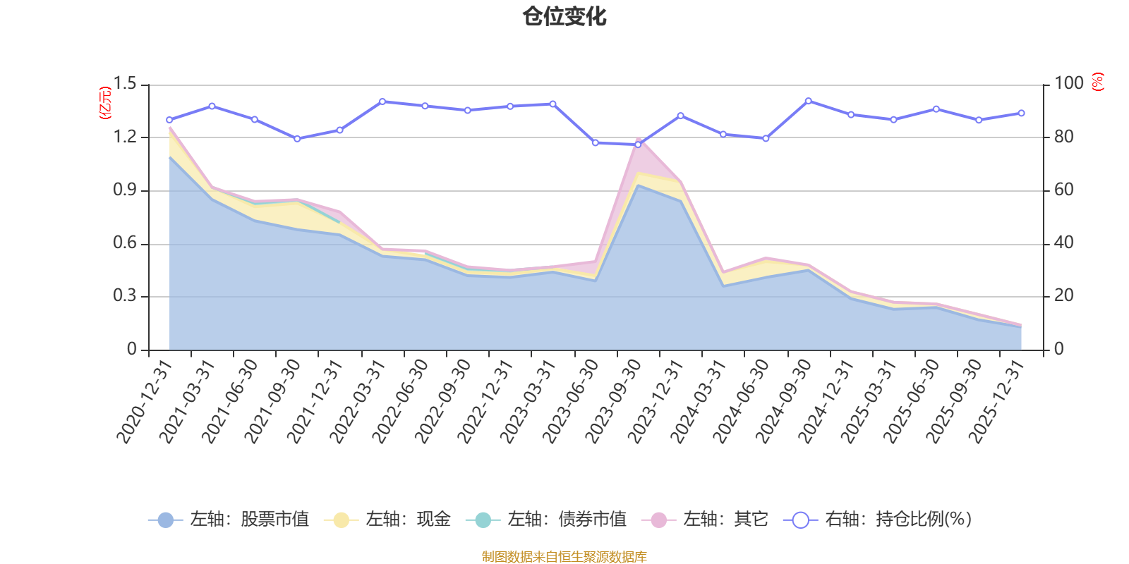 据定期报告数据统计,近三年平均股票仓位为86.13%,同类平均为86.9%。2024年三季度末基金达到93.86%的最高仓位,2023年三季度末最低,为77.38%。