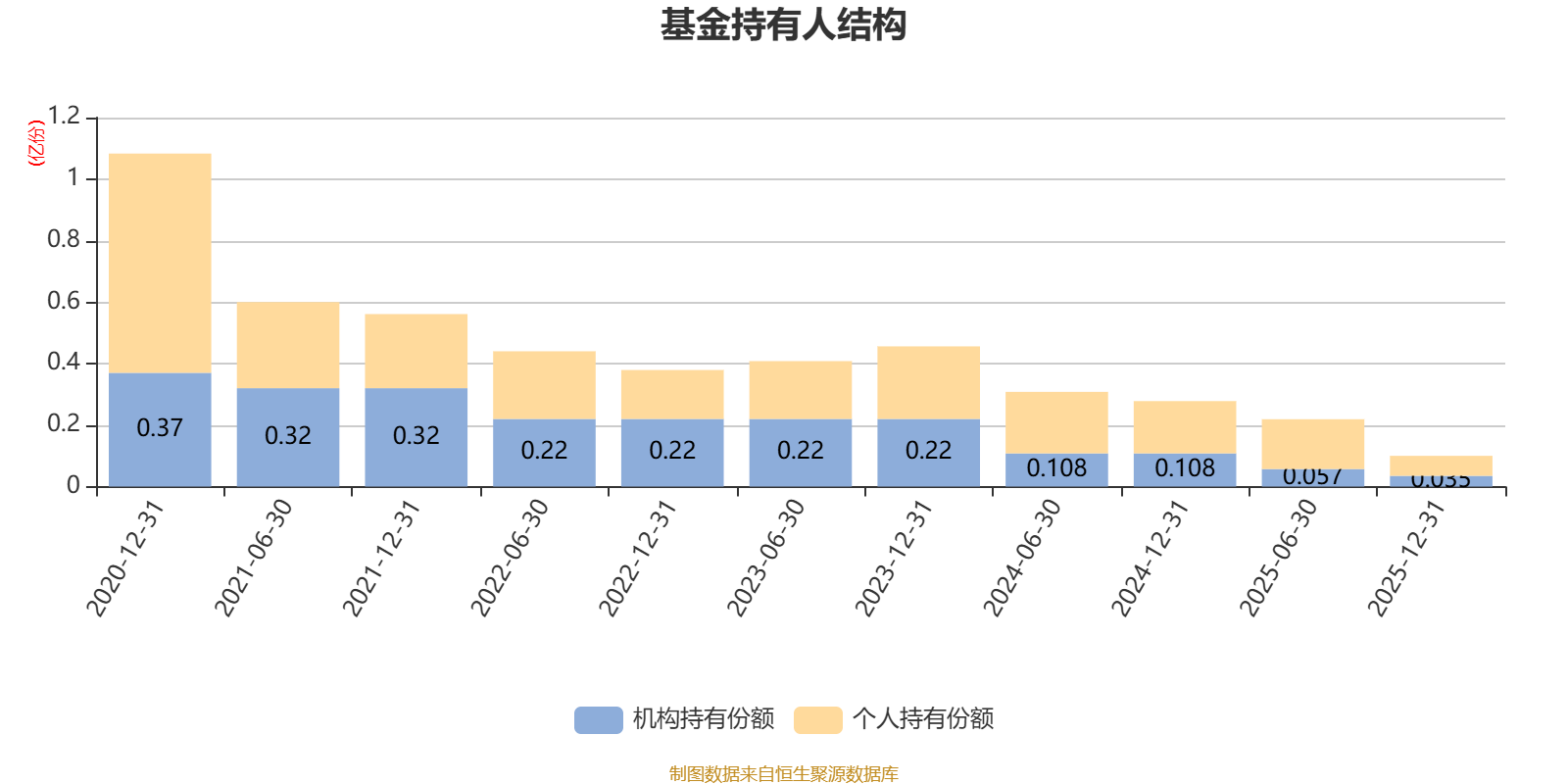 截至2025年12月31日,基金持有人共计434户,合计持有999.67万份。其中管理人员工持有988.22份,占比0.01%,机构持有份额占比34.78%,个人投资者占比65.22%。