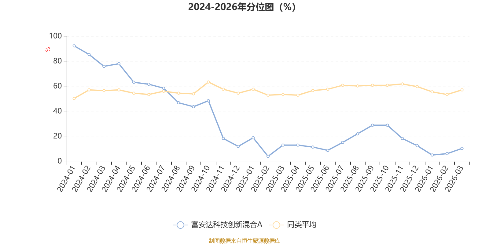 通过所选区间该基金净值增长率分位图,可以观察该基金与同类基金业绩比较情况。图为坐标原点到区间内某时点的净值增长率在同类基金中的分位数。