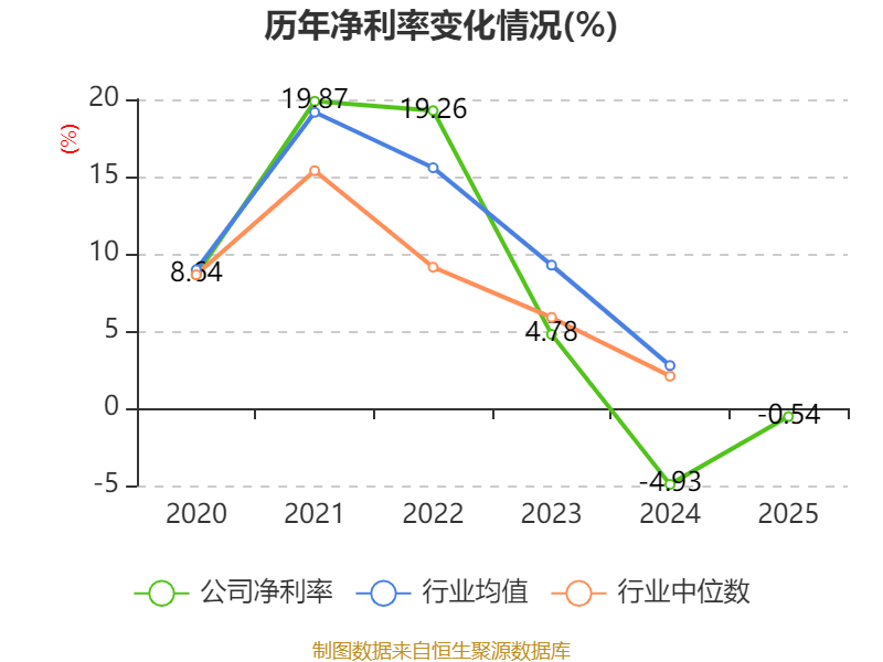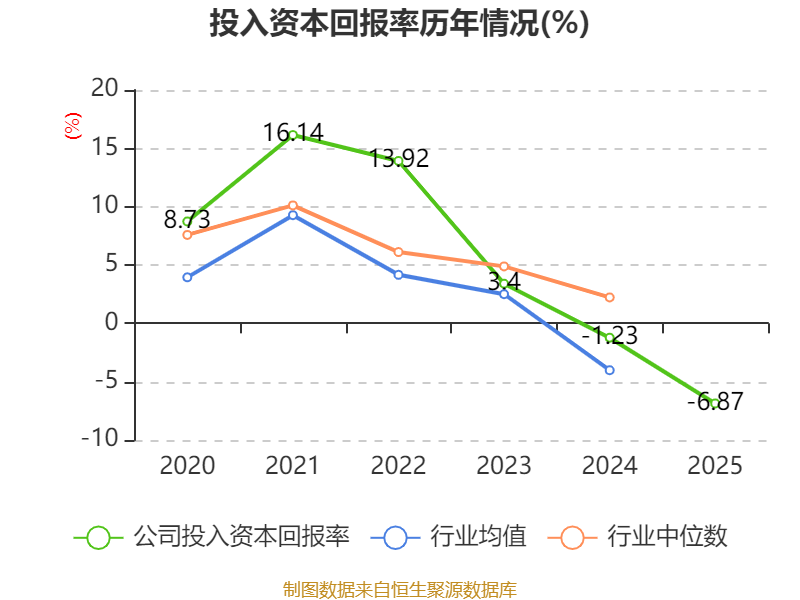 数据显示,2025年公司加权平均净资产收益率为-0.51%,较上年同期上升3.1个百分点。公司2025年投入资本回报率为-6.87%,较上年同期下降5.64个百分点。