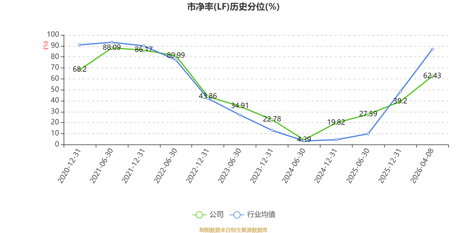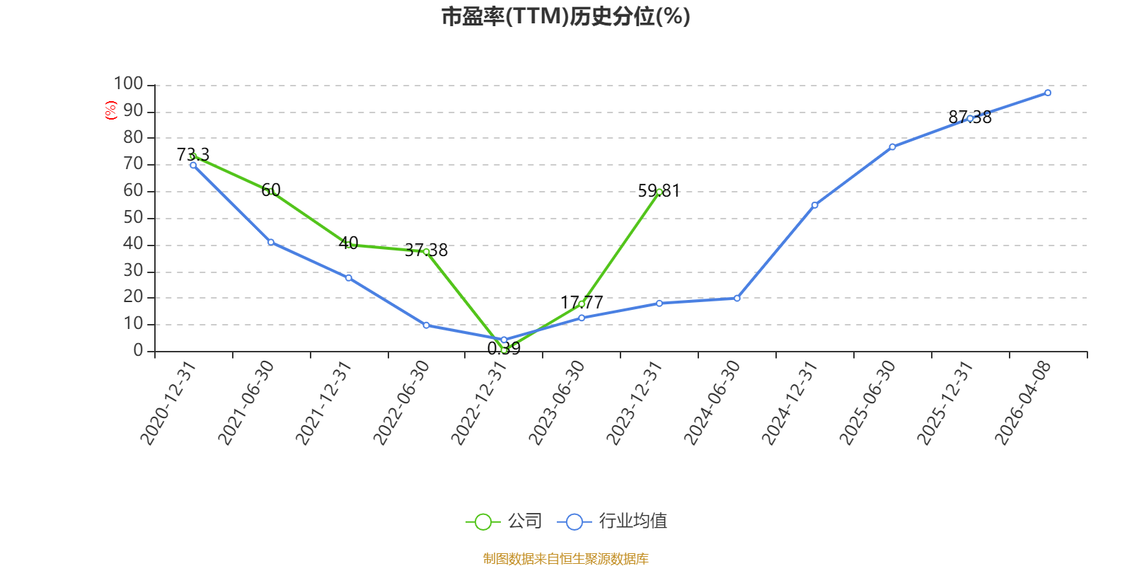 市盈率、市净率为负时,不显示当期分位数,会导致折线图中断。