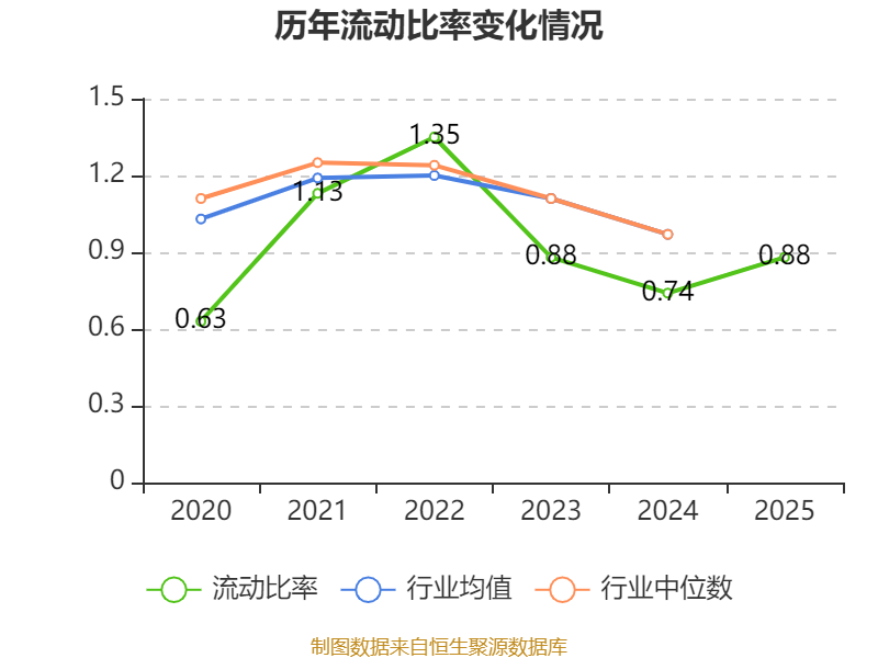 2025年,公司流动比率为0.88,速动比率为0.63。