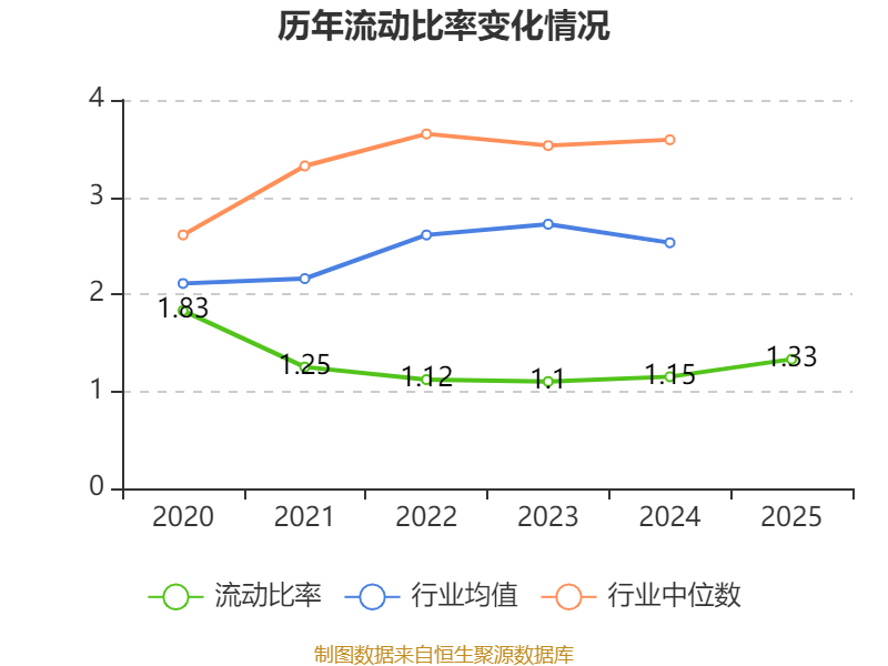 2025年,公司流动比率为1.33,速动比率为1.08。