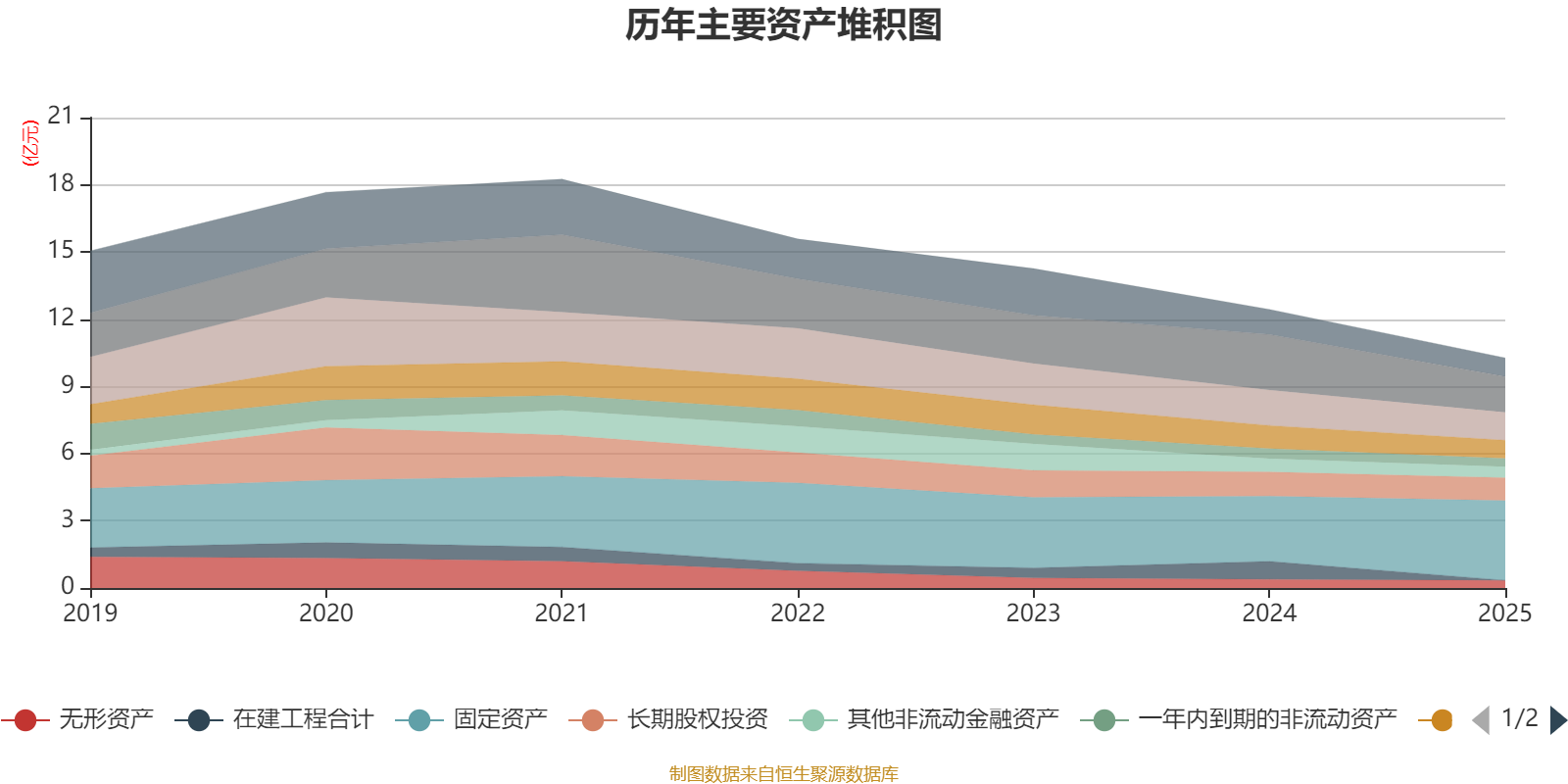 资产重大变化方面,截至2025年末,公司固定资产较上年末增加22.33%,占公司总资产比重上升11.28个百分点;在建工程合计较上年末减少99.56%,占公司总资产比重下降6.44个百分点;货币资金较上年末减少35.34%,占公司总资产比重下降4.32个百分点;长期股权投资较上年末减少5.55%,占公司总资产比重上升1.25个百分点。