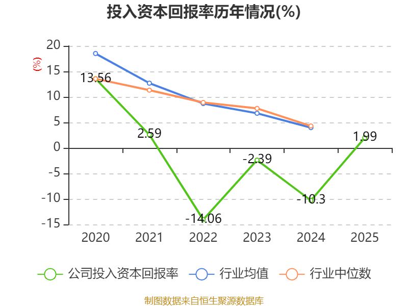 数据显示,2025年公司加权平均净资产收益率为2.37%,较上年同期上升20.1个百分点。公司2025年投入资本回报率为1.99%,较上年同期上升12.29个百分点。
