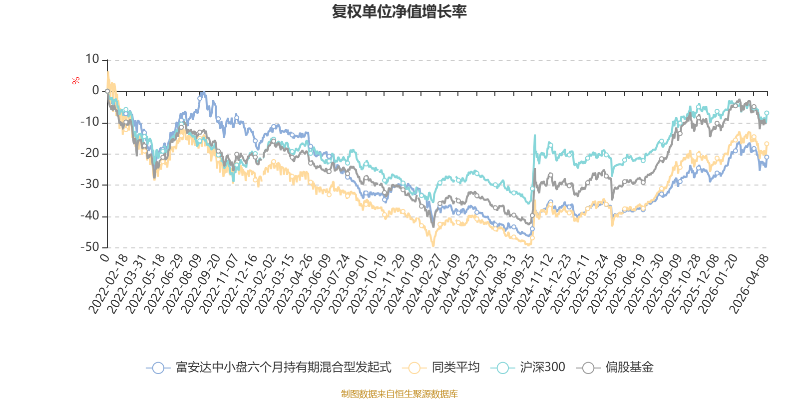 截至4月8日,富安达中小盘六个月持有期混合型发起式近三个月复权单位净值增长率为0.52%,位于同类可比基金291/621;近半年复权单位净值增长率为5.47%,位于同类可比基金221/621;近一年复权单位净值增长率为33.56%,位于同类可比基金393/618;近三年复权单位净值增长率为-8.86%,位于同类可比基金485/559。