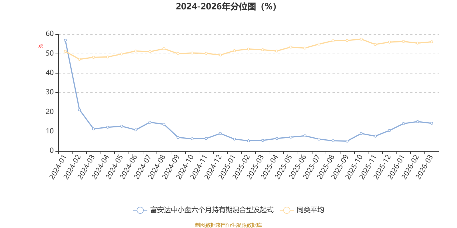 通过所选区间该基金净值增长率分位图,可以观察该基金与同类基金业绩比较情况。图为坐标原点到区间内某时点的净值增长率在同类基金中的分位数。