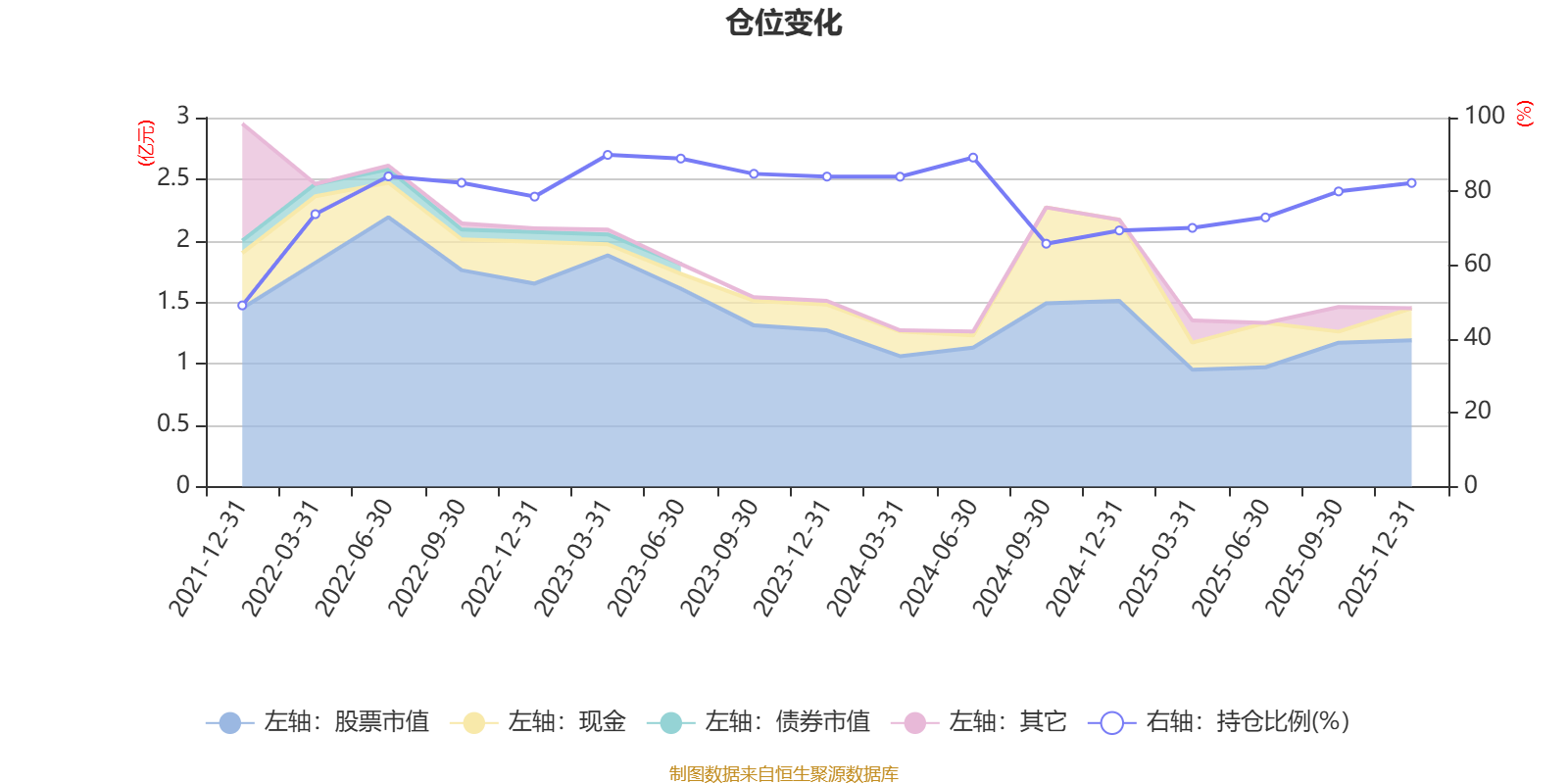 据定期报告数据统计,近三年平均股票仓位为80.11%,同类平均为85.83%。2023年一季度末基金达到89.89%的最高仓位,2021年末最低,为49.1%。