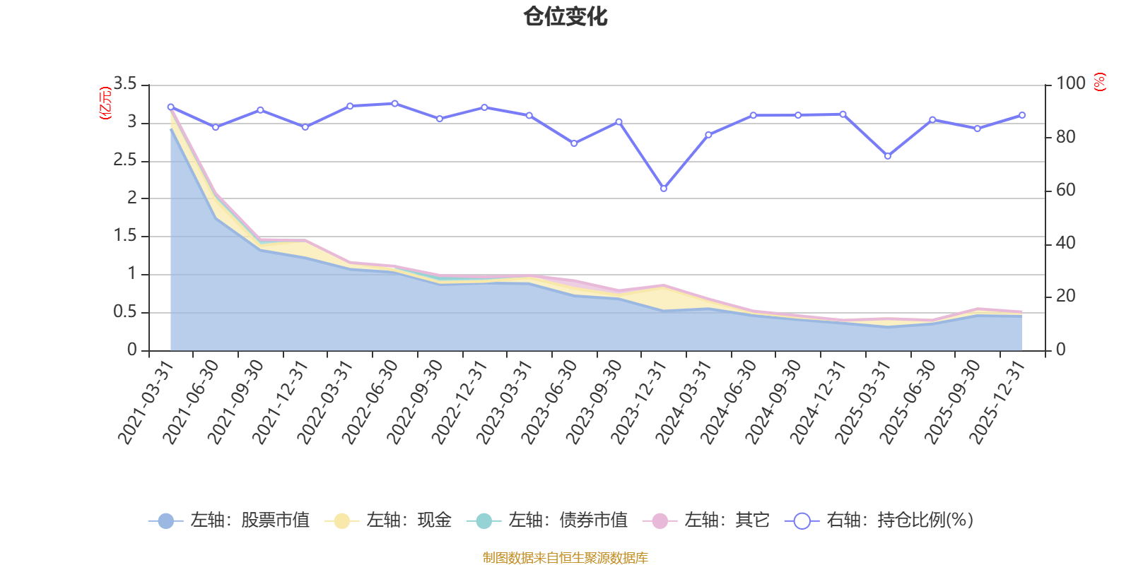 据定期报告数据统计,近三年平均股票仓位为82.73%,同类平均为84.04%。2022年上半年末基金达到92.94%的最高仓位,2023年末最低,为60.98%。