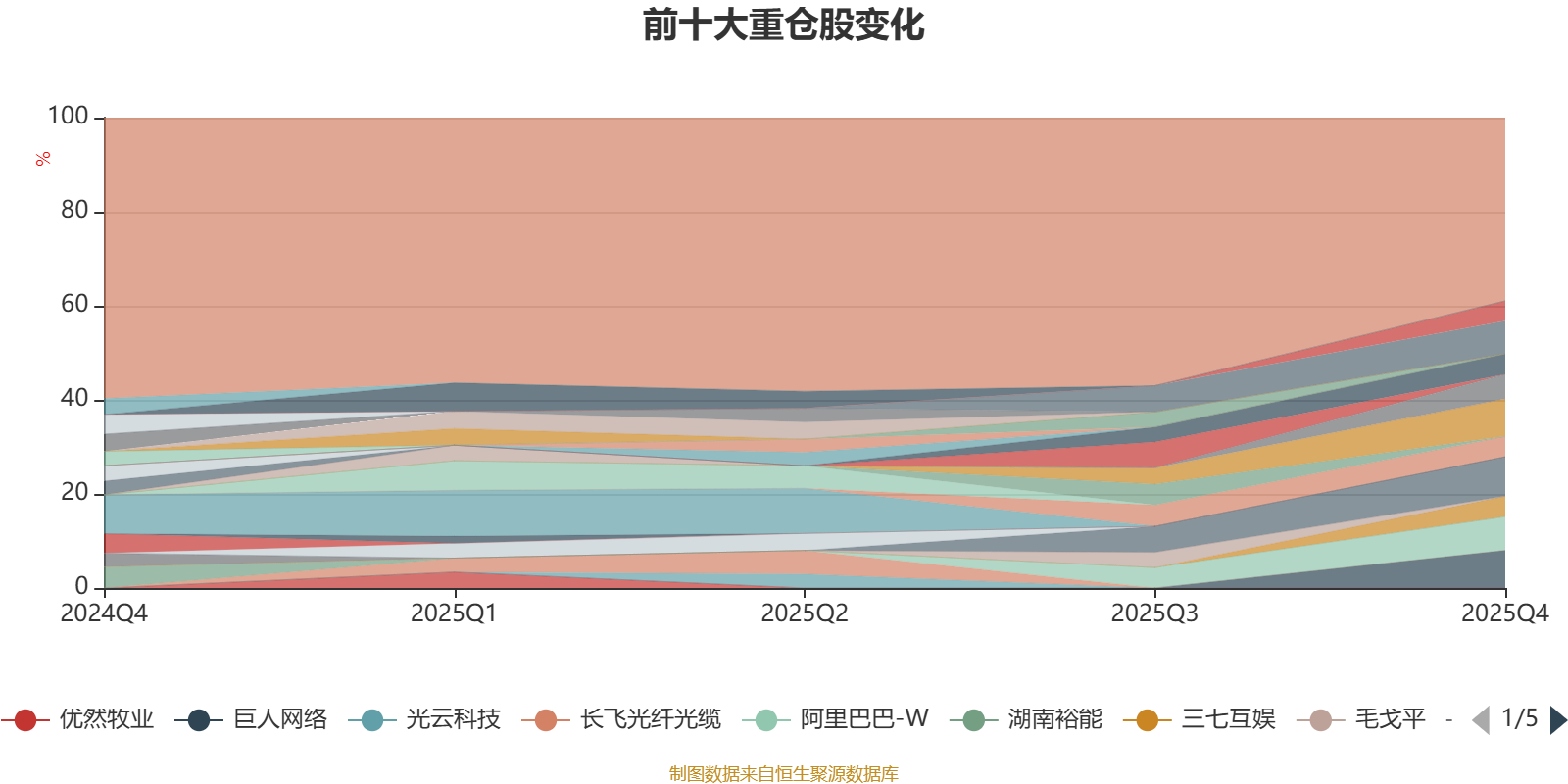 截至2025年末,基金十大重仓股分别是恺英网络、巨人网络、极兔速递-W、阿里巴巴-W、泡泡玛特、东鹏饮料、三七互娱、完美世界、快手-W、锅圈。