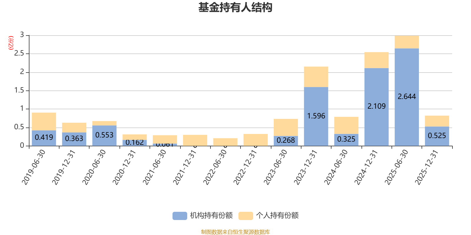 截至2025年12月31日,基金持有人共计1.54万户,合计持有8187.41万份。其中管理人员工持有8.82万份,占比0.11%,机构持有份额占比64.09%,个人投资者占比35.91%。