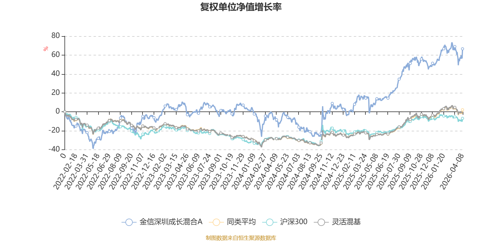 截至4月8日,金信深圳成长混合A近三个月复权单位净值增长率为3.41%,位于同类可比基金296/1287;近半年复权单位净值增长率为6.07%,位于同类可比基金444/1286;近一年复权单位净值增长率为68.58%,位于同类可比基金213/1286;近三年复权单位净值增长率为50.90%,位于同类可比基金141/1286。