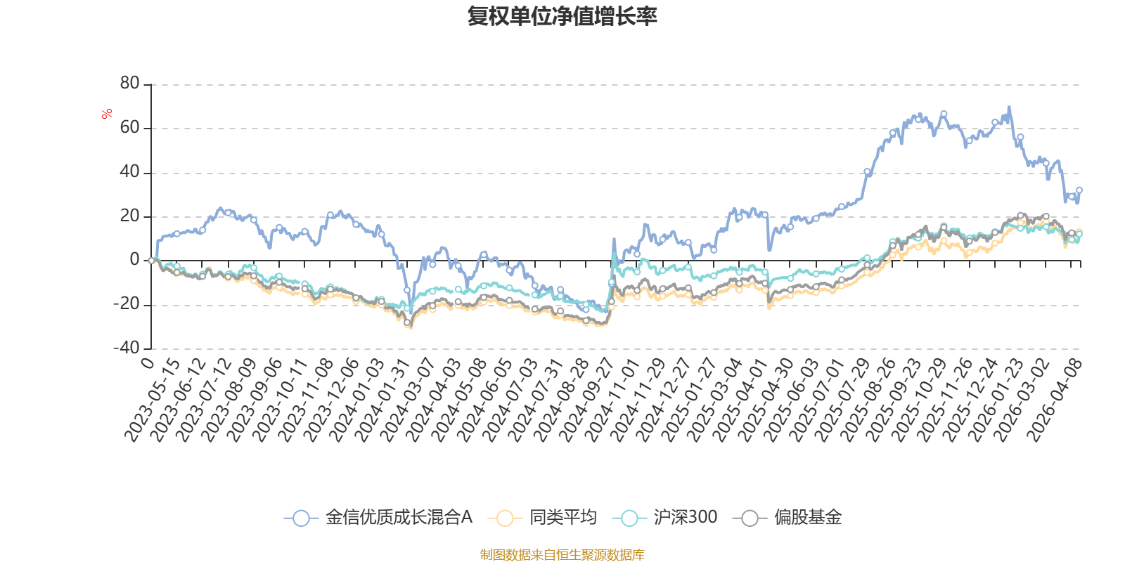 截至4月8日,金信优质成长混合A近三个月复权单位净值增长率为-20.79%,位于同类可比基金687/689;近半年复权单位净值增长率为-19.64%,位于同类可比基金676/689;近一年复权单位净值增长率为26.26%,位于同类可比基金467/685。