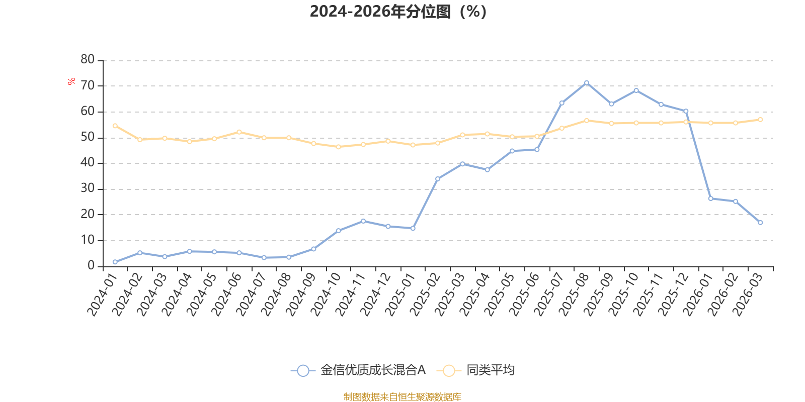 通过所选区间该基金净值增长率分位图,可以观察该基金与同类基金业绩比较情况。图为坐标原点到区间内某时点的净值增长率在同类基金中的分位数。
