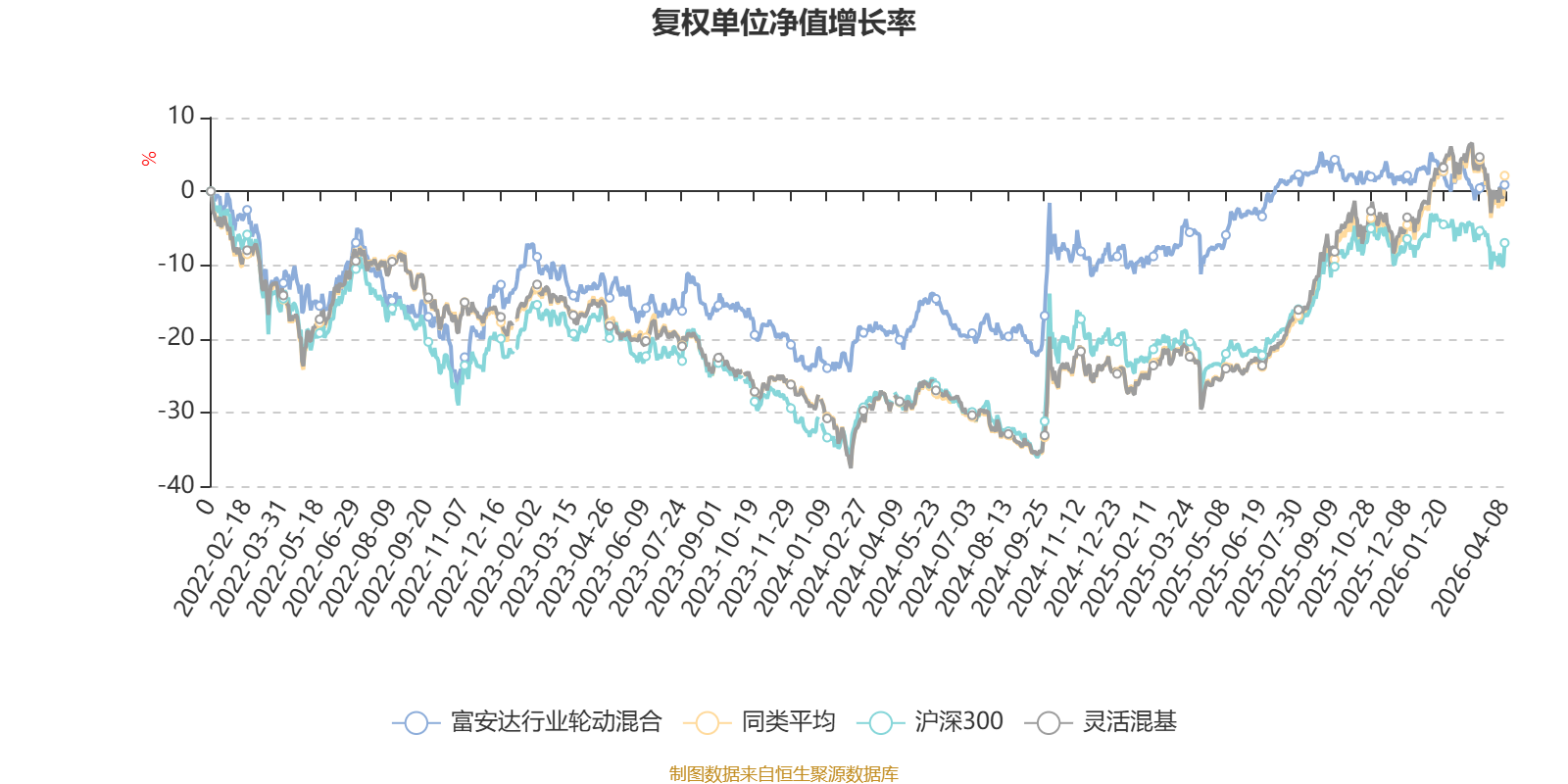 截至4月8日,富安达行业轮动混合近三个月复权单位净值增长率为-3.05%,位于同类可比基金962/1287;近半年复权单位净值增长率为-1.09%,位于同类可比基金931/1286;近一年复权单位净值增长率为11.43%,位于同类可比基金1038/1286;近三年复权单位净值增长率为15.29%,位于同类可比基金601/1286。
