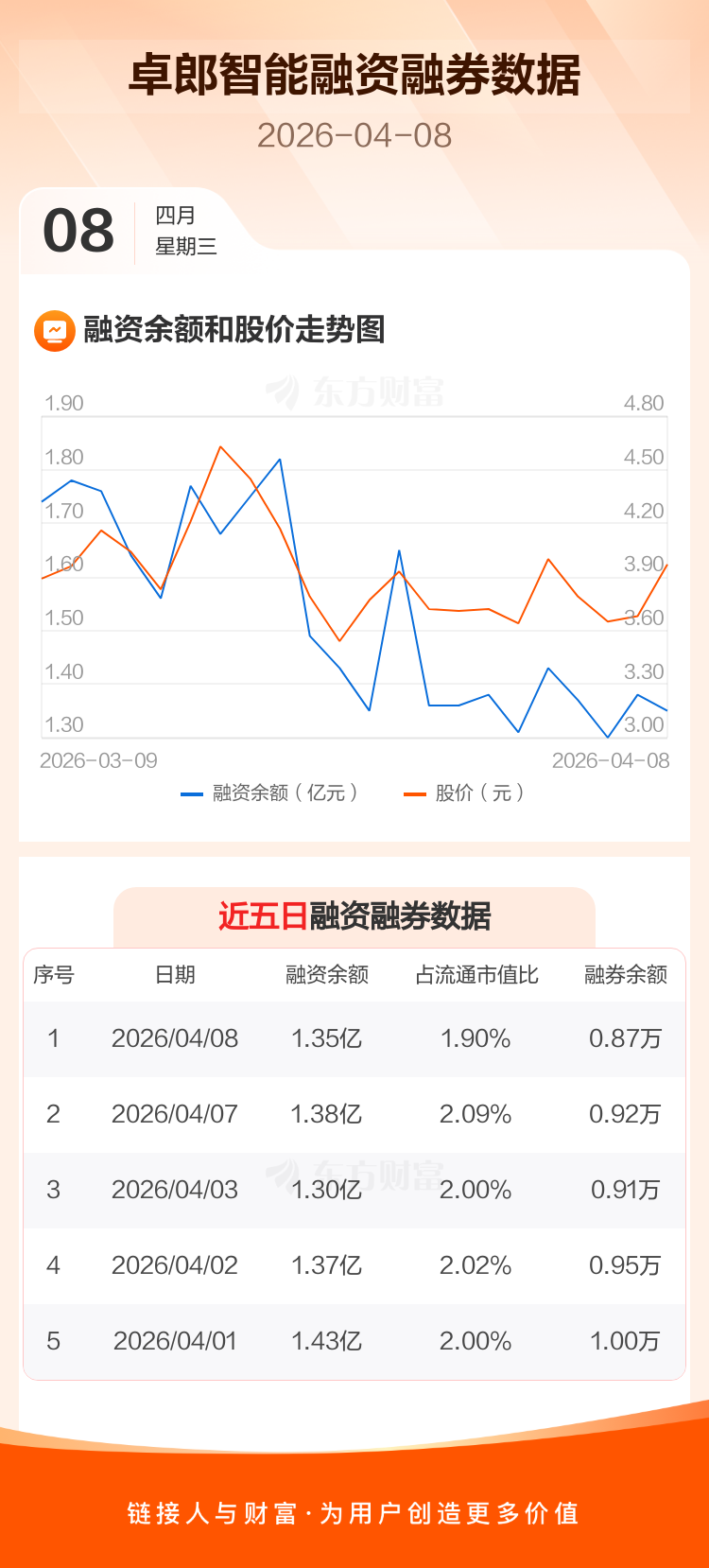交易所最新数据显示,卓郎智能于2026年4月8日获融资买入2830.32万元,融资偿还3080.25万元,当日融资净偿还249.93万元。目前,该股融资余额1.35亿,占流通市值比例为1.90%。