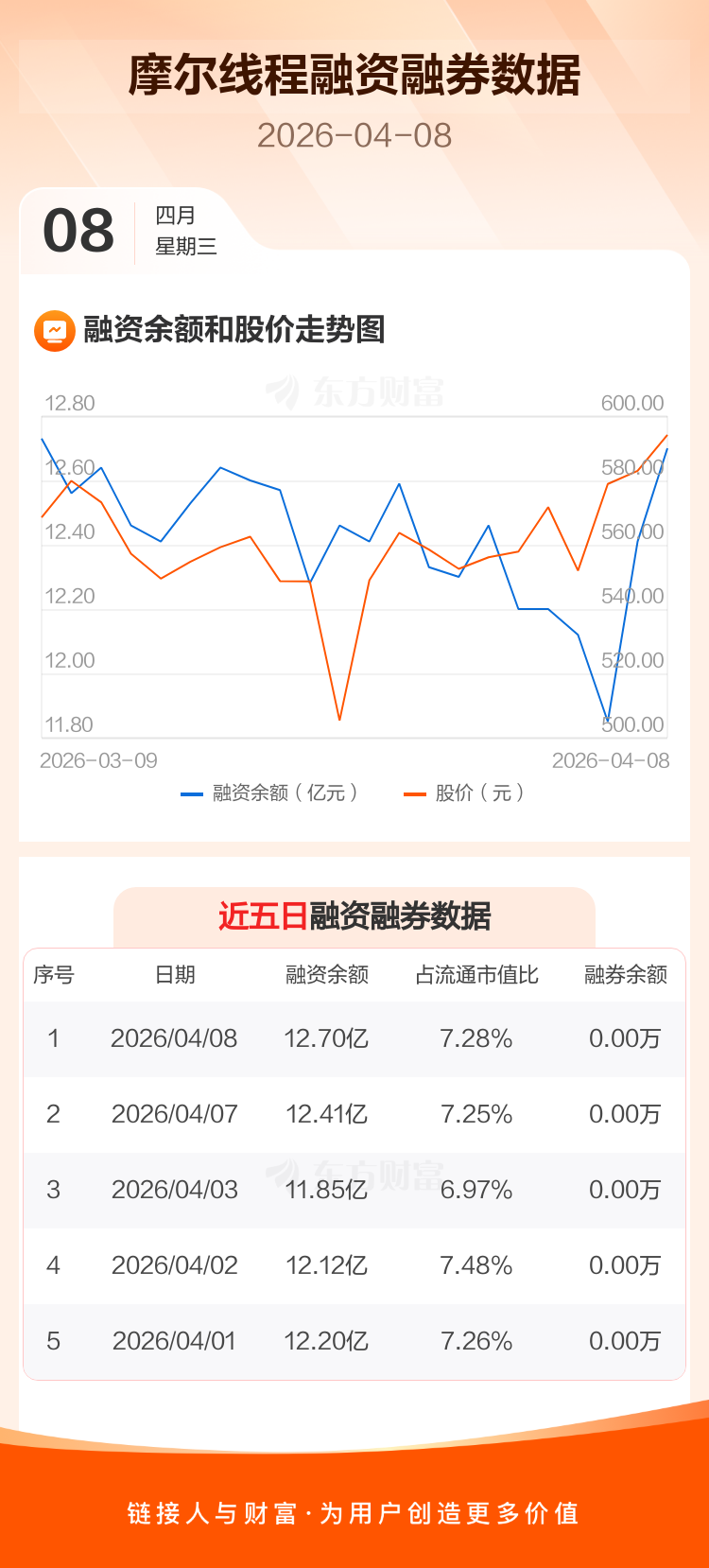 交易所最新数据显示,摩尔线程于2026年4月8日获融资买入1.78亿元,融资偿还1.49亿元,当日融资净买入2899.86万元。目前,该股融资余额12.70亿,占流通市值比例为7.28%。