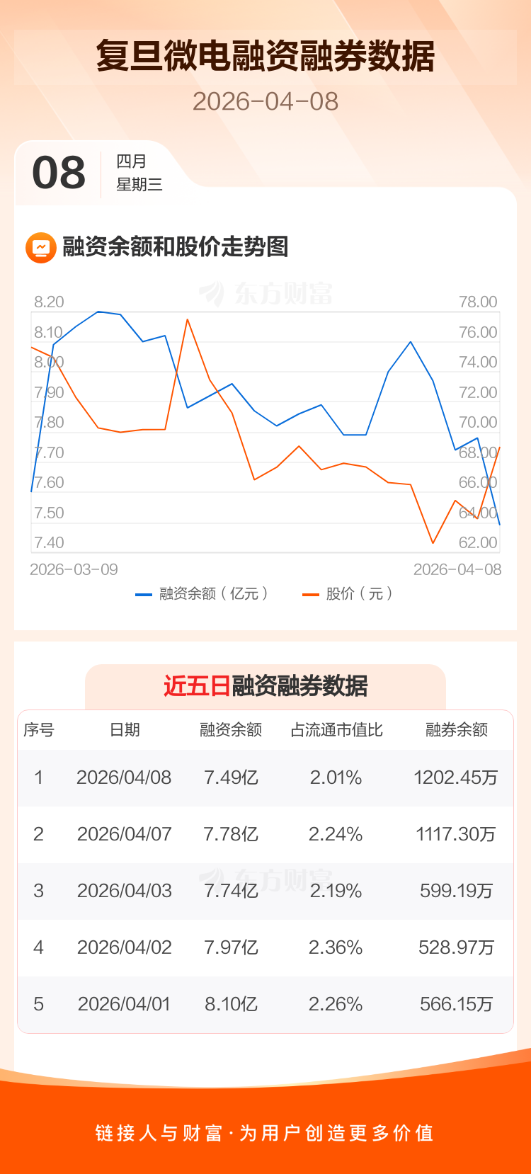 交易所最新数据显示,复旦微电于2026年4月8日获融资买入5547.18万元,融资偿还8446.15万元,当日融资净偿还2898.97万元。目前,该股融资余额7.49亿,占流通市值比例为2.01%。