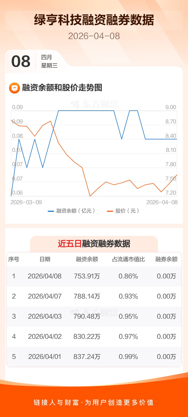 绿亨科技:融资净偿还34.23万元,融资余额753.91万元