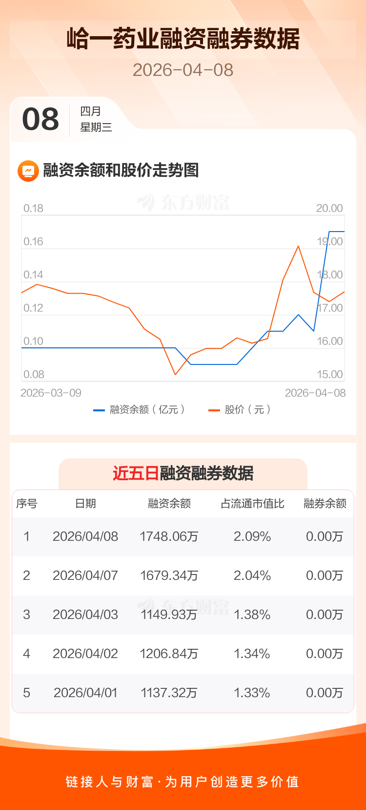 交易所最新数据显示,峆一药业于2026年4月8日获融资买入274.54万元,融资偿还205.81万元,当日融资净买入68.73万元。目前,该股融资余额1748.06万,占流通市值比例为2.09%。