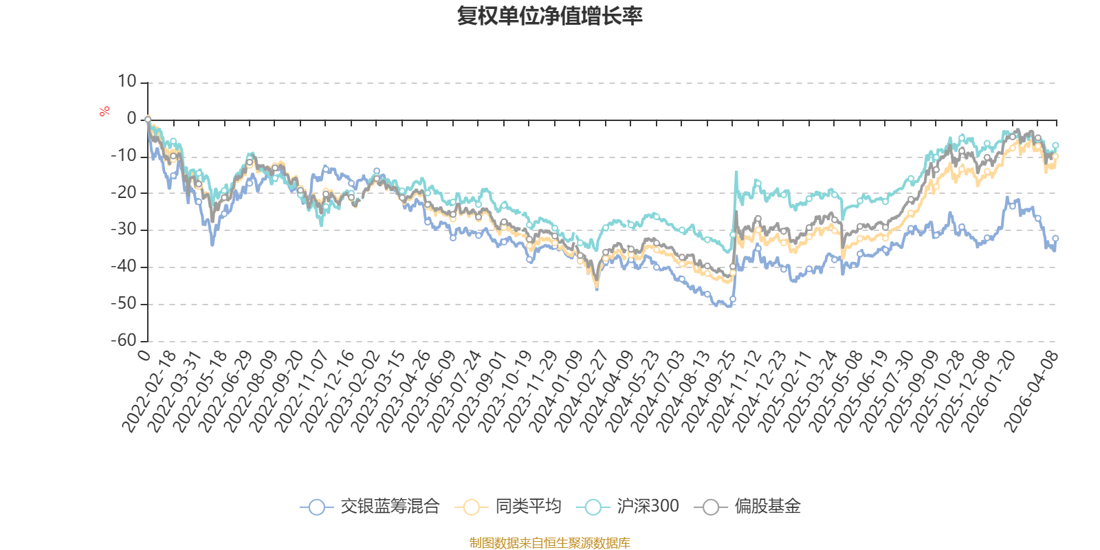 截至4月8日,交银蓝筹混合近三个月复权单位净值增长率为-10.57%,位于同类可比基金177/185;近半年复权单位净值增长率为-8.79%,位于同类可比基金160/185;近一年复权单位净值增长率为15.96%,位于同类可比基金165/185;近三年复权单位净值增长率为-13.72%,位于同类可比基金168/177。