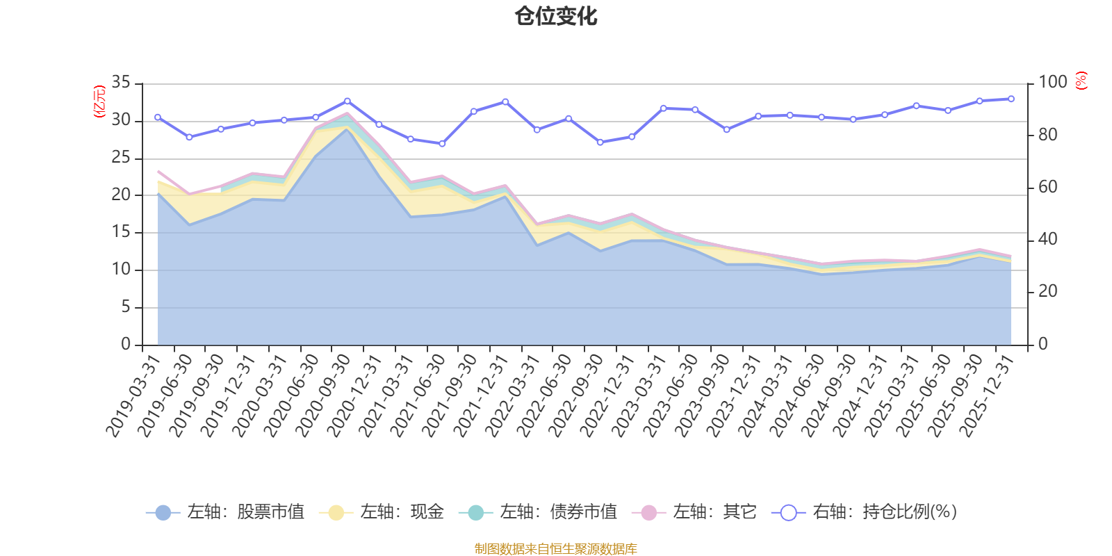 据定期报告数据统计,近三年平均股票仓位为89.01%,同类平均为87.64%。2025年末基金达到94.11%的最高仓位,2021年上半年末最低,为76.98%。
