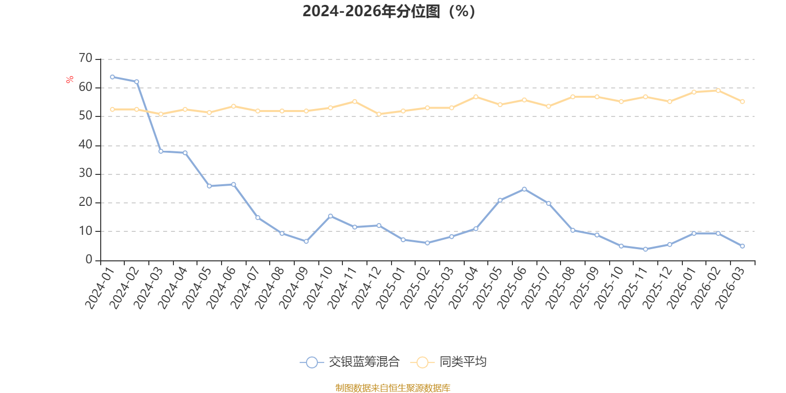 通过所选区间该基金净值增长率分位图,可以观察该基金与同类基金业绩比较情况。图为坐标原点到区间内某时点的净值增长率在同类基金中的分位数。