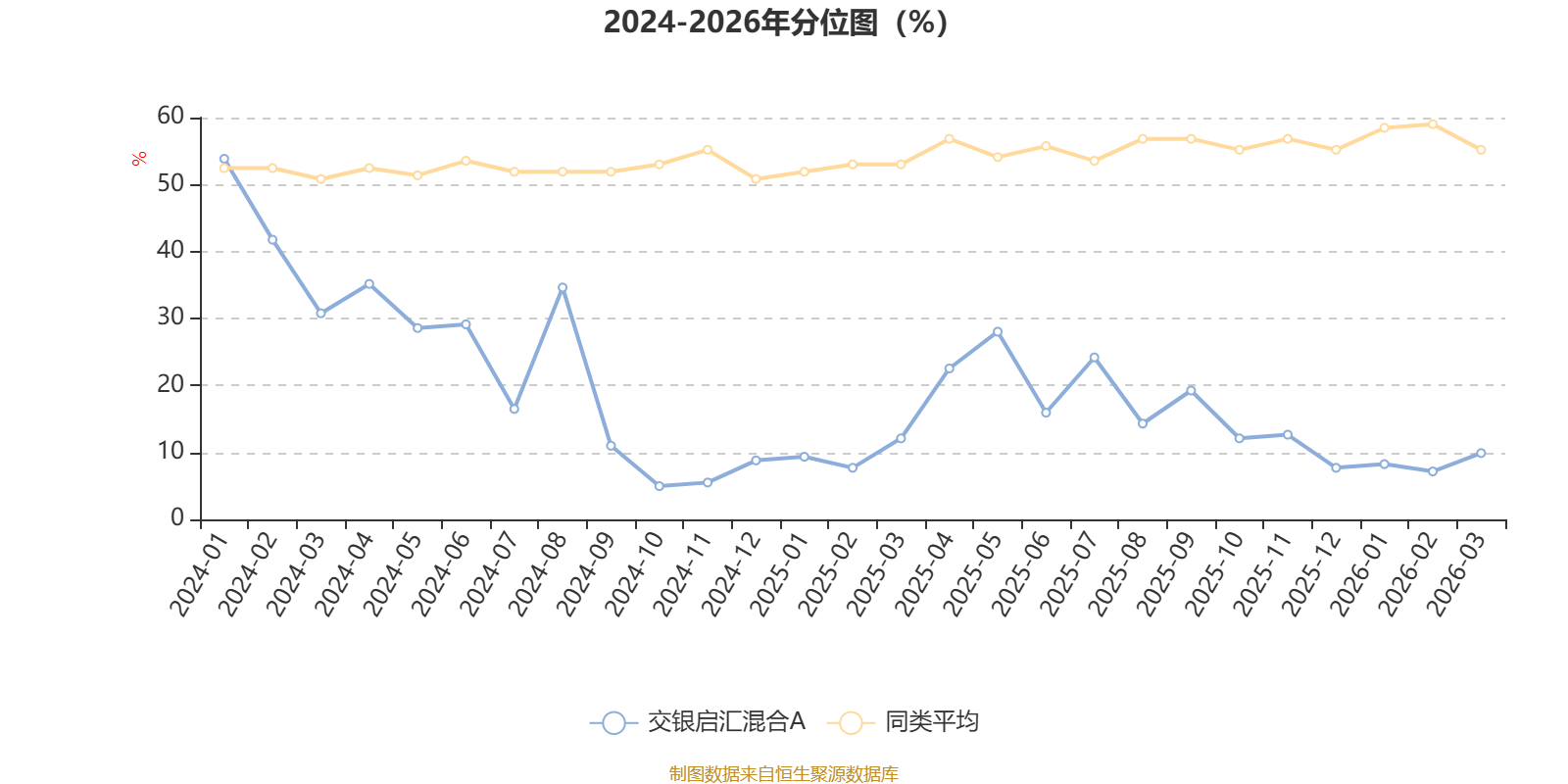 通过所选区间该基金净值增长率分位图,可以观察该基金与同类基金业绩比较情况。图为坐标原点到区间内某时点的净值增长率在同类基金中的分位数。
