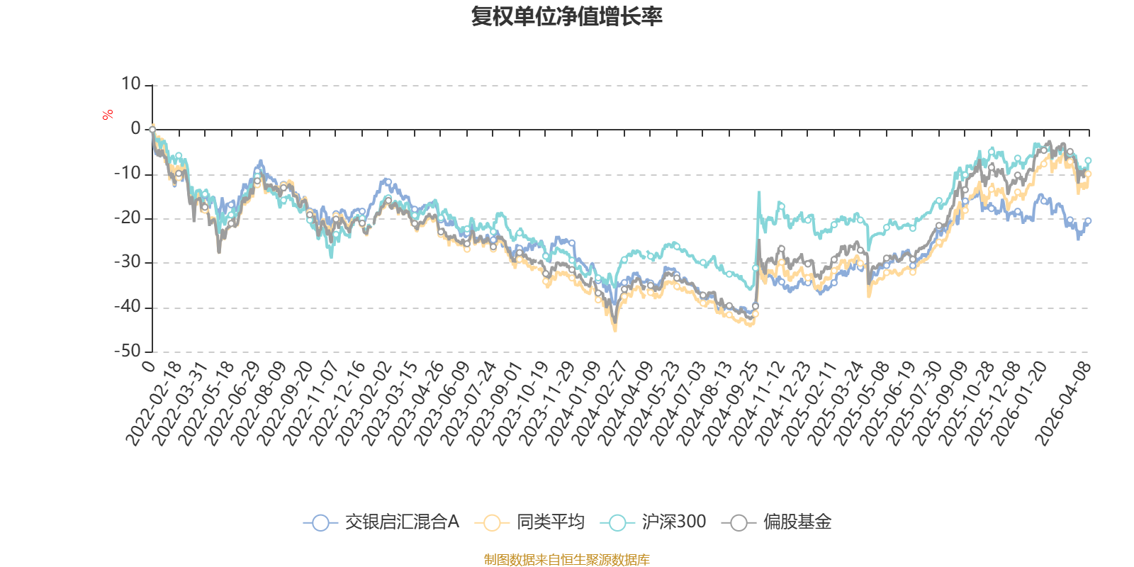 截至4月8日,交银启汇混合A近三个月复权单位净值增长率为-4.68%,位于同类可比基金143/185;近半年复权单位净值增长率为-8.77%,位于同类可比基金159/185;近一年复权单位净值增长率为23.00%,位于同类可比基金152/185;近三年复权单位净值增长率为-4.76%,位于同类可比基金147/177。